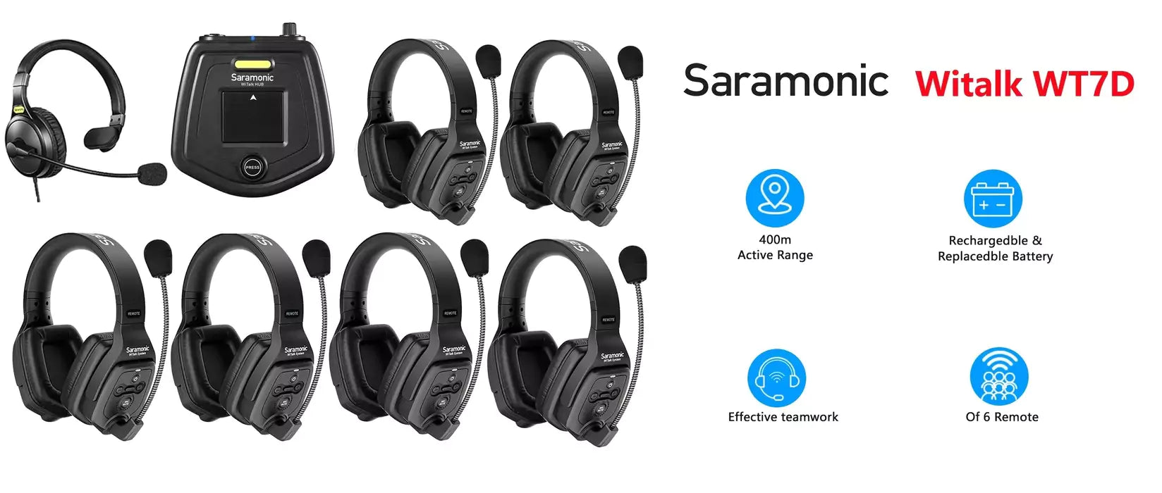 Saramonic Witalk WT7D là một trong những mẫu thuộc dòng WTD từ Saramonic dành cho mục đích đàm thoại và liên lạc nội bộ giữa các thành viên. Hệ thống liên lạc WiTalk này phù hợp với các công việc như quản lý, sản xuất phim/ảnh, biểu diễn, tổ chức sự kiện thể thao hay chụp ảnh cần nhiều nhân sự.