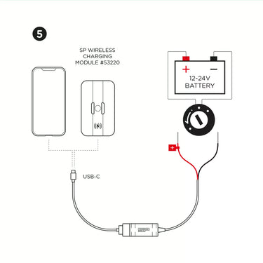 Sử dụng Cáp Sạc SP Connect ™ 12V để kết nối trực tiếp Module sạc không dây SP Connect ™ với ắc quy xe máy.