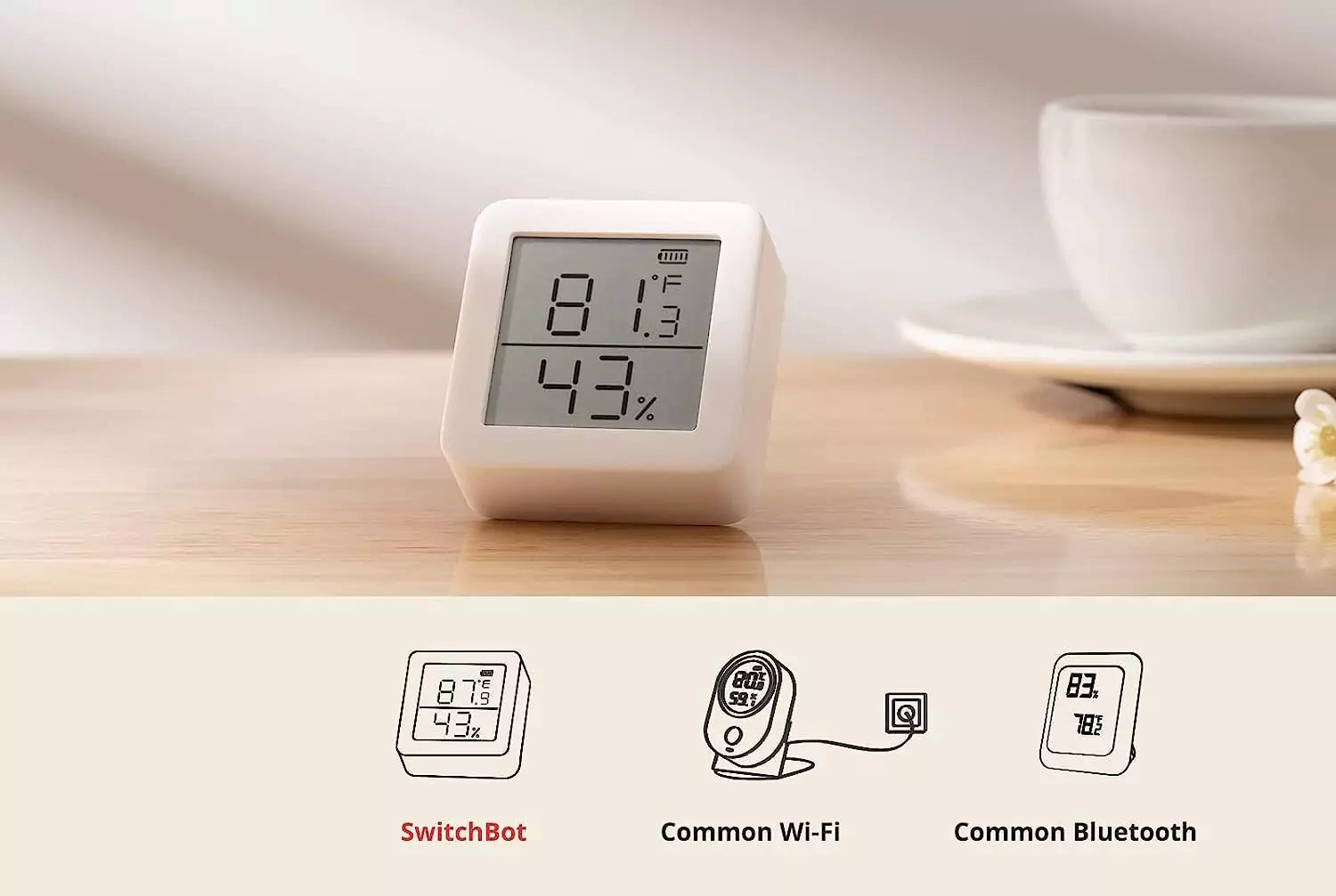 - Lưu trữ dữ liệu trên thiết bị trong 36 ngày và trong ứng dụng 2 năm (Lưu trữ đám mây không giới hạn với SwitchBot Hub).