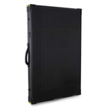 Boulder 200 Briefcase has a total capacity of 200W including 2 100W solar panels (18-22V) in series with a portable folding design.