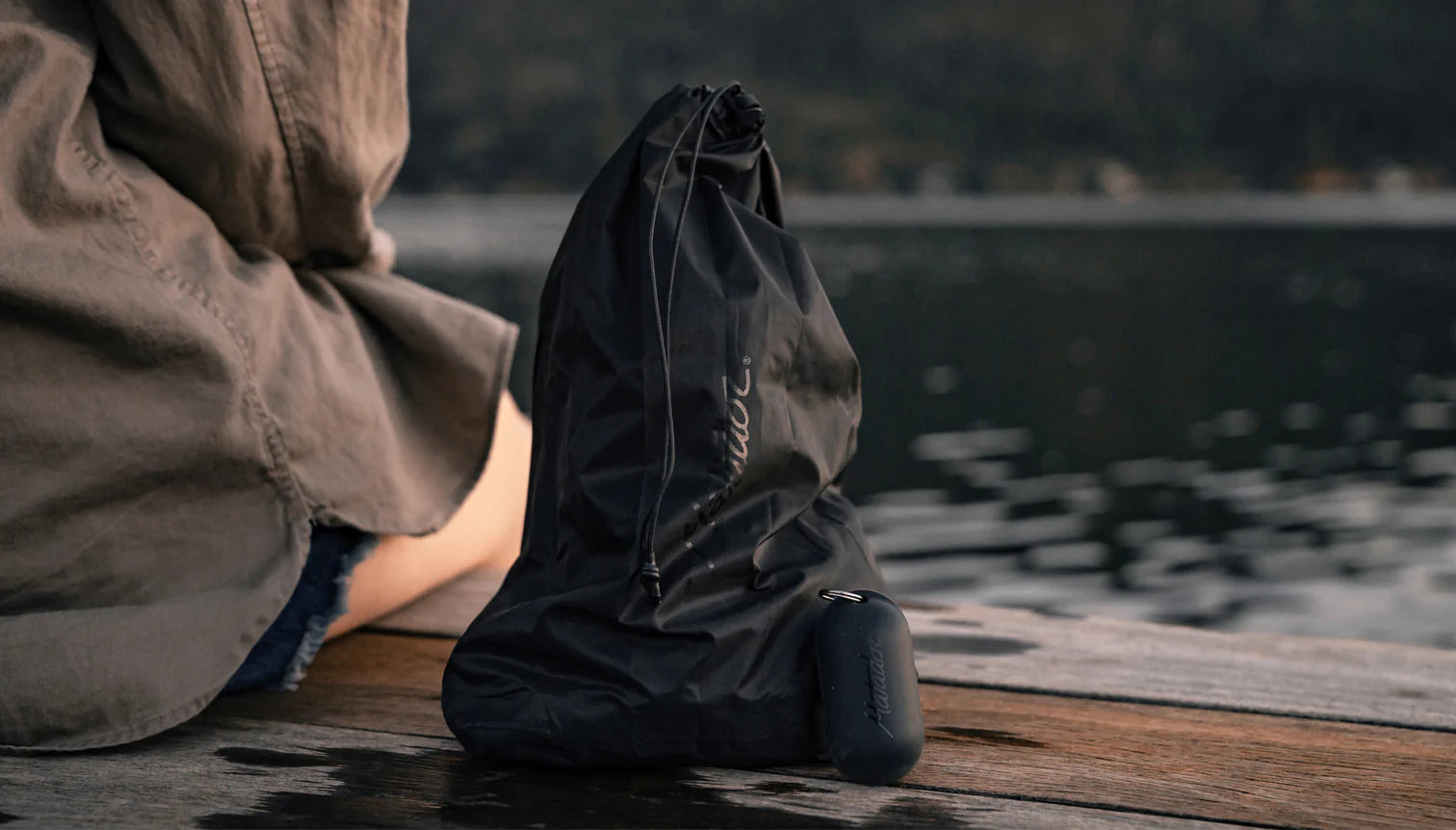 The 2.5L water-resistant Droplet bag is compressed inside an ultra-compact Silicon case. With this size, you can easily attach it to your key ring and carry it with you at any time.