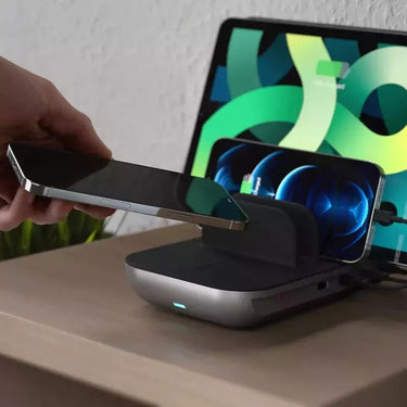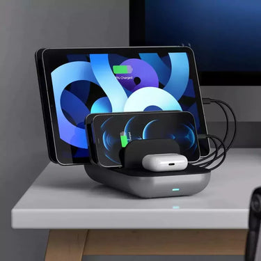 The Satechi Multi-Device 5-device charging dock gives you a neat place to charge your phone, tablet, and wireless headphones without having to use too many chargers or multiple power outlets. All your mobile devices are in one place so they're easy to use and don't get lost.