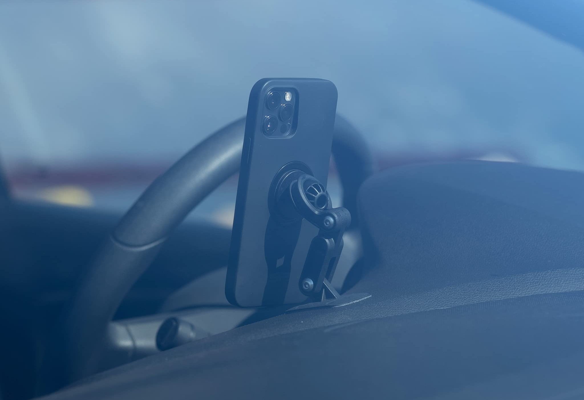 Your mobile phone is securely anchored right in your line of sight, allowing you to navigate, access music playlists or read messages.