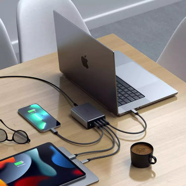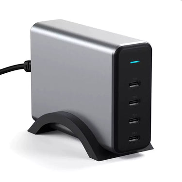 Satechi 4-port USB-C 165W PD charging dock has Gallium Nitride (GaN) technology that allows you to provide power to 4 different devices at the same time. With 4 USB-C PD ports supporting up to 165W of charging power, this 165W PD GaN charger from Satechi can easily power your MacBook Pro M3/M2/M1 at full capacity or charge your iPad simultaneously Pro, iPhone, and MacBook anytime, anywhere.