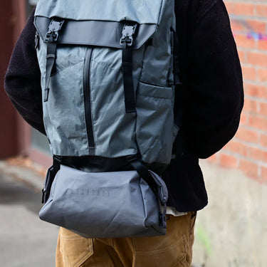 This is the version that hangs below travel backpacks, different from the Aux Compartment that is worn on the front.
