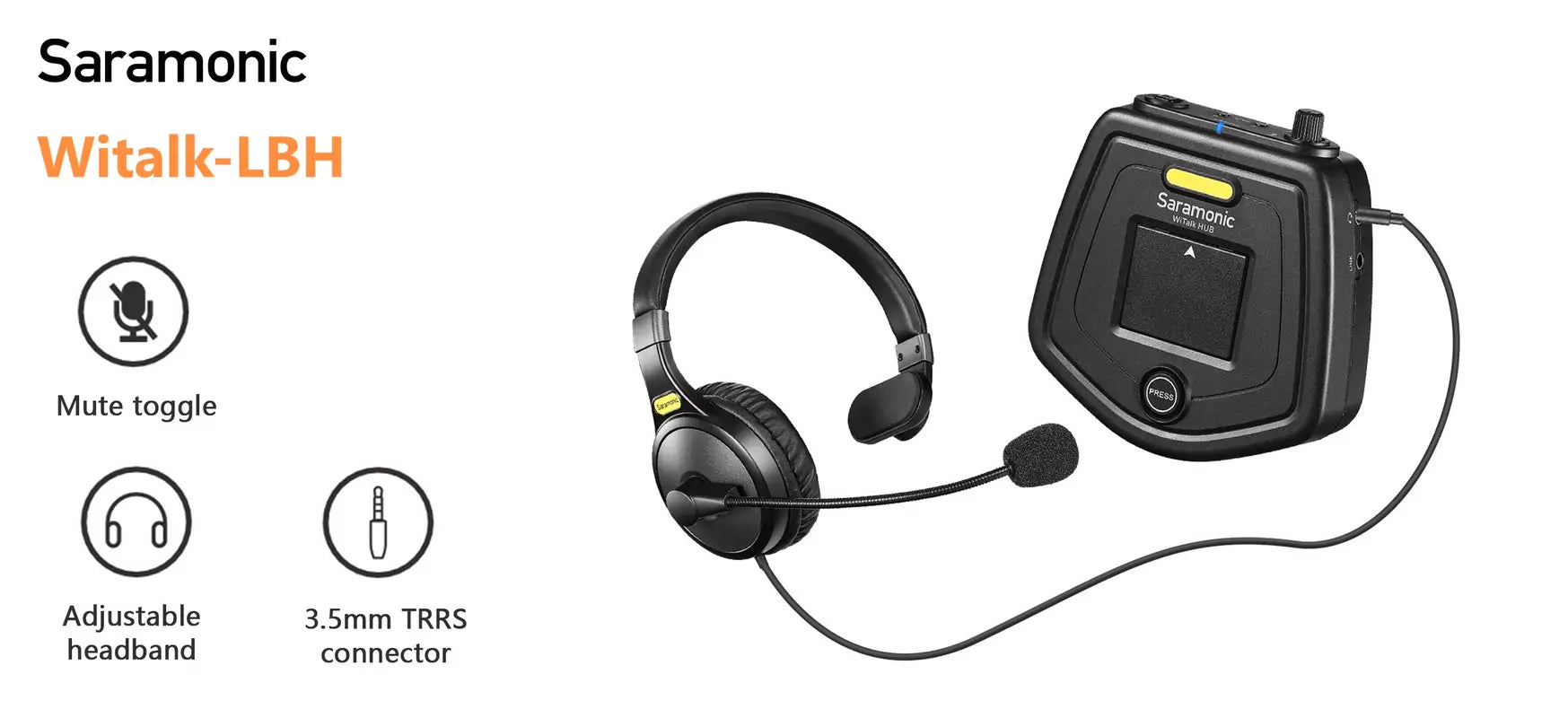 The Saramonic WiTalk LBH headset is a headset used in conjunction with the WiTalk-HUB intercom station to establish communication with other members of your team. This device plays an extremely important role in event management, backstage staging, filming and music videos, etc.