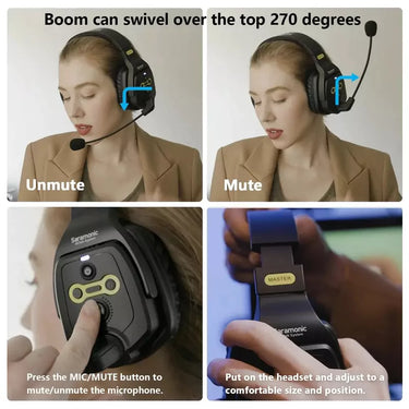 As a product of Saramonic's WTD series, WiTalk WT6D provides an intercom solution for up to 6 members. The headset effectively supports management tasks, film production, music performances, sports or photography. The product set includes 1 set of WiTalk-Hub and 6 DRH headsets.