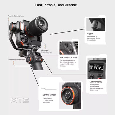 Ngoài việc hỗ trợ quay và chống rung, thì Hohem iSteady MT2 / MT2 Kit còn có các tính năng bổ trợ, giúp bạn quay các video khám phá đô thị, ngoài trời, cắm trại cũng như ghi hình thể thao, cụ thể như sau: