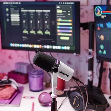 Shure MV7+ là một micro dynamic có thể thỏa mãn các podcaster, streamer và nhà sáng tác nhạc khóp tính. Phiên bản cập nhật này có cổng ra USB-C và XLR, chế độ Auto Level tốt hơn, cùng với bộ lọc pop kỹ thuật số mới, tính năng giảm nhiễu theo thời gian thực và hiệu ứng vang. Bộ mic còn có hàng loạt tùy chọn màu sắc khiến cho đèn LED chạm tắt âm trở lên độc đáo như âm thanh mà bạn muốn mang lại cho khách hàng.