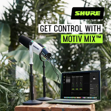 Shure MV7+ tương thích với ứng dụng MOTIV Mix™ trên Windows 10 trở lên/Mac OS 12 trở lên, yêu cầu RAM tối thiểu 8 GB, dung lượng ổ cứng 20% ​​trở lên.