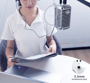 - Giắc cắm tai nghe 3,5 mm cho phép bạn theo dõi và đảm bảo độ rõ của âm thanh trong quá trình ghi âm.