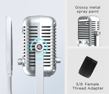 - Một giá đỡ để bàn có thể điều chỉnh và bộ lọc pop được bao gồm, cho phép bạn bắt đầu dễ dàng và nhanh chóng để ghi âm phòng thu tại nhà, podcasting, phát trực tiếp, v.v.